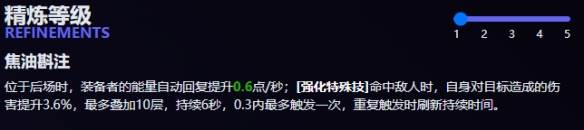 [强化特殊技]命中敌人时,自身对目标造成的伤害提升 3.6%,最多叠加10层,持续6秒,0.3秒内最多触发一次,重复触发时刷新持续时间。