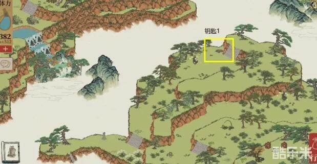 钥匙2:在右下角的树林旁边。