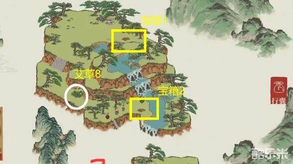 宝箱1、2:河流上下各有一个