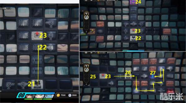 4、接着前往上面的 22 区域,将 23 区域的开关向上推动一下后即可前往 24 区域。然后再去 25 区域,将 23 区域的开关向右推动一下后即可前往 26 区域。接着撞开 26 区域右边的墙壁后前往 27 区域传送。
