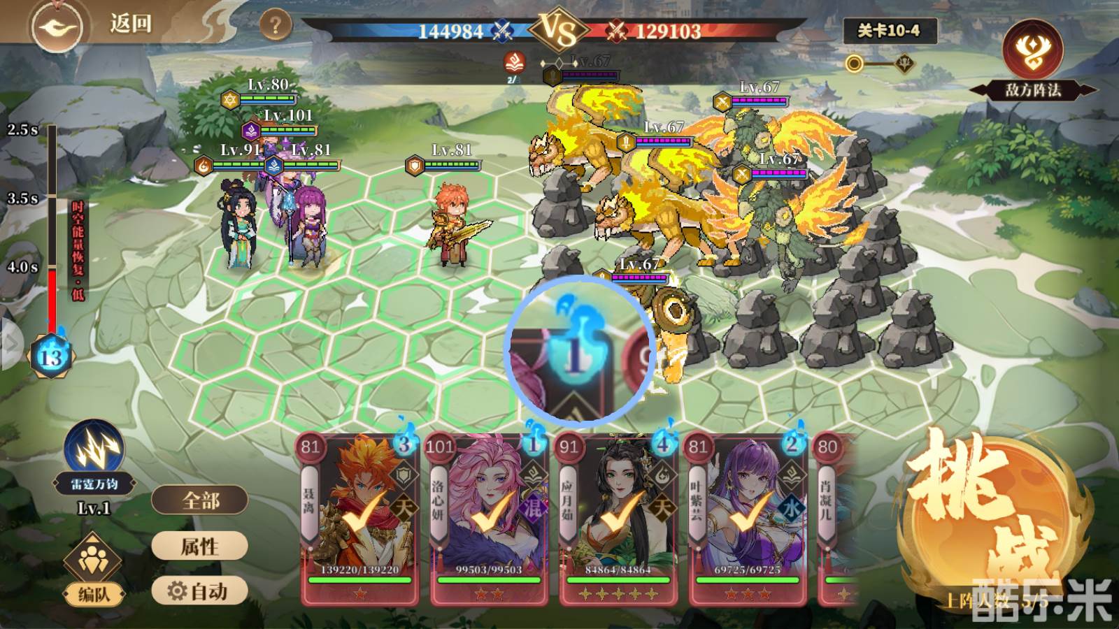 可以通过上阵高共鸣值的妖灵师,去提升共鸣值。详见出战栏角色卡牌中,右上角的数字。数字越大,能提供的共鸣值就越多。我们可以从图中看出,洛心妍的共鸣值为1,这是导致队伍中能量回复速度变慢的核心原因。