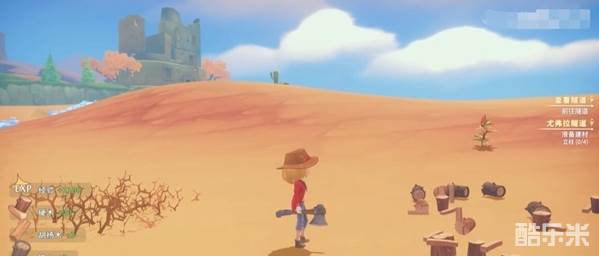 3、收集木材:前往沙漠地图,砍伐黄色的大树获得胡杨木。