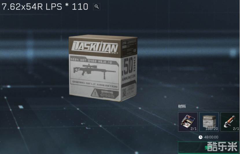 7.62x54R LPS和7.62x54R BT分别是4级弹药和5级弹药,同样可以在交易行中购买,或将工作台升级到3级之后进行生产。