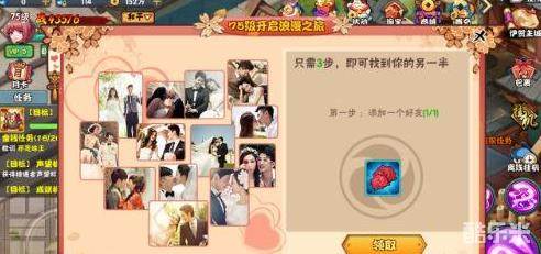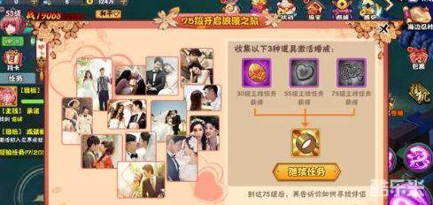 玩家们想要结婚的话,首先第一个条件就是等级,达到75级才会开启结婚系统。开启结婚系统后,玩家们需要激活婚戒才能够进行下一步。婚戒激活的方法很简单,在主界面的左上角你就会发现一个“我要结婚”的按钮,点击之后即可看到婚戒的激活条件了,完成30级主线任务、55级主线任务以及75级主线任务即可激活婚戒: