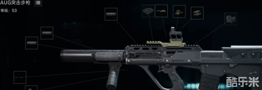 这里我优先推荐大家选择AUG这把突击步枪,理由很简单解锁等级低,而且这把枪在后坐力、射程、精准度三个方面都有一定优势,尤其是枪管射程加成特别多,适合架枪流玩家。