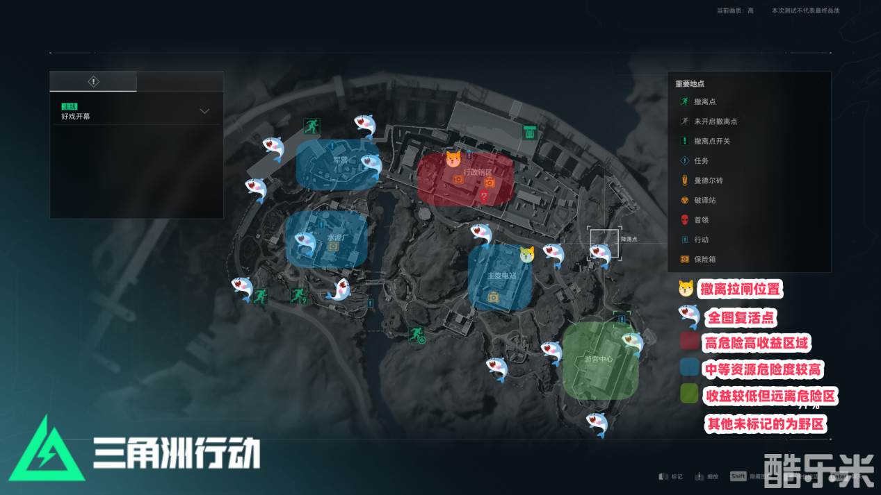 地图中除了明显的标识区域外,还有很多“隐藏”信息。例如在零号大坝地图中共计14处复活点,北方的拉闸撤离点有2处对应的拉闸区域等。而且地图中还藏有许多的“鸟窝”、“井盖”以及“密码房”、“密钥房”、“奇葩彩蛋位置”等等不计其数的“高价值物品爆率点位”,如果不掌握这些基础信息,是无法做到巨巨几十万的出货量的。