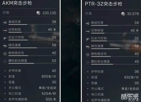 与AKM突击步枪具备相同的据枪稳定性与操控速度,相对而言,PTR-32突击步枪的护甲伤害略有逊色,但它裸枪单价便宜,用更低的成本就能改装得更趁手,改装的性价比更高。