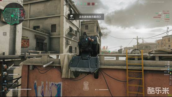 这个点位爬上去是一个正常卡位点,所以不会有“地图边界”提示,而且在这张地图中很多小矮房可以利用全地形车爬墙上屋顶,然后在房顶之间来回开车碾压卡位敌人。