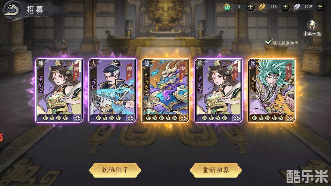 新手开荒阵容:东海龙王+虾兵+蟹将!
