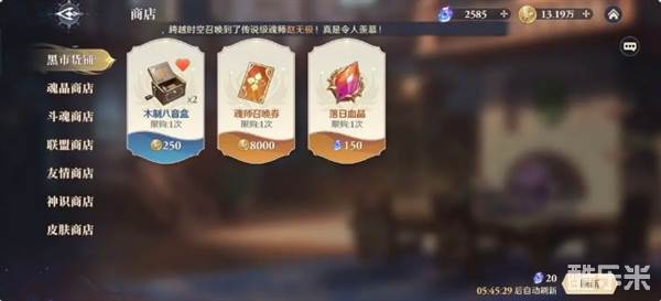 作为商城的第一栏货物,黑市里面可是有不少好东西,部分商品可以通过金魂币购买,而部分商品则需要通过魂晶购买,玩家们每天有一次免费刷新的机会。