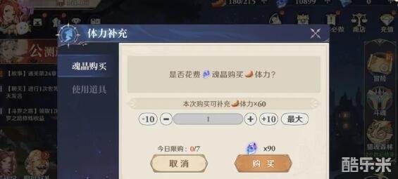 3、还有一个方式就是”每日购买”,这是需要消耗对应的材料来兑换体力的,可以使用对应数量魂晶来购买香肠,一个香肠可以直接回复60点的体力,那么能够购买多少的香肠,一方面取决于大家有多少魂晶,另一方面每个人也是有一个对应的购买上限的。