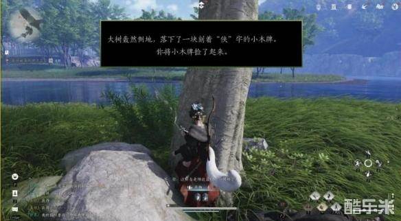 2、接着跟随引导砍掉大树获得侠字小木牌。