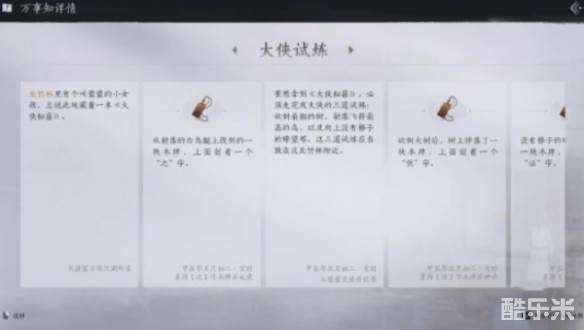 以上就是酷乐米小编整理带来的《燕云十六声》大侠试炼任务攻略