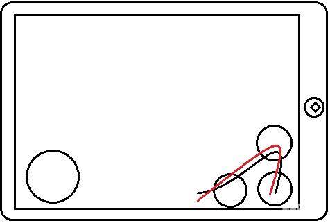 按照红线和黑线用两个指头划过 你会发现三把枪全都Fire了= =这种渣装备6-3boss瞬杀= =三把散弹枪打出自动步枪的感觉哟。其实划圈圈也行,原理和手枪速射类似。似乎两个指头按在一个武器上就可以以接近0的延迟造成无限点击的效果 所以这样划是切枪+开枪的集合!~你们觉得如何呢~~~~求点评= =~~~~!是我第一个发现的吗!!!~~~~好激动呀=。=