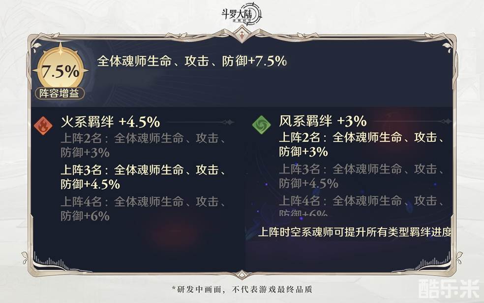 上阵同系别魂师达2、3、4名时可激活阵容增益,所以尽量上阵相同系别的魂师以激活最高增益数值。这个羁绊激活并非绝对,如果有高品质、高强度的魂师可优先使用(队伍绝对强度高于羁绊加成)。