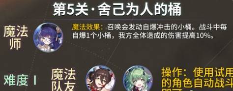 《崩坏:星穹铁道》开拓友谊魔法第5关舍己为人的桶这一关的挑战难度相对较高,玩家需要手动释放角色战技和终结技,有很多小伙伴对此还不太清楚,接下来就让酷乐米小编为大家介绍一下吧。