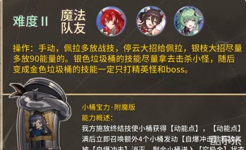 2、具体操作:手动战斗,多使用佩拉的战技,停云大招给佩拉,优先使用银色垃圾桶的技能击杀小怪,用金色垃圾桶的技能攻击精英怪和boss。
