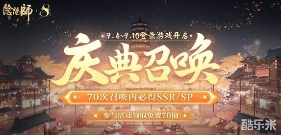 《阴阳师》八周年免费70抽怎么领,不知不觉,阴阳师都已经8周年了,这次周年活动可以免费领70抽,但很多玩家不清楚,下面就跟着酷乐米小编一起来看看领取时间和方法吧。