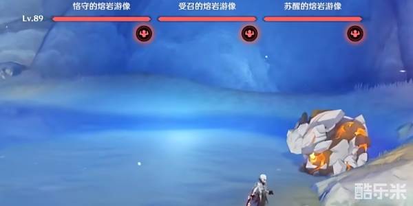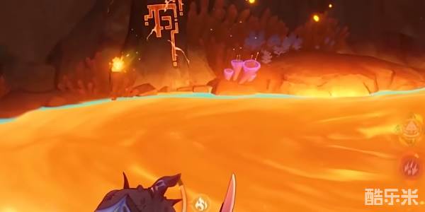 4、然后穿过铁门调查熔浆池中的装置,变身为鳍游龙寻找2处揭露文,返回熔浆池中的装置旁