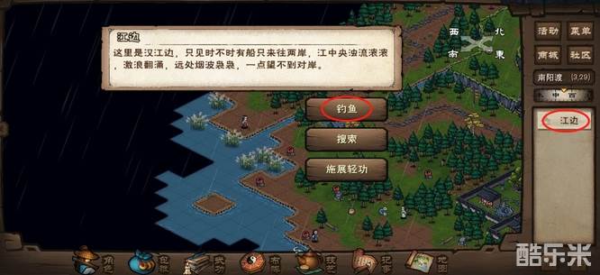 1、玩家可先来到南阳渡南边(18,32)位置,找到鱼叟和其对话,在对话中选择钓鱼,花费300文钱学习。