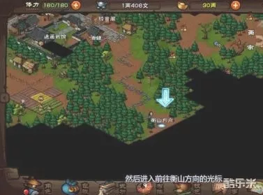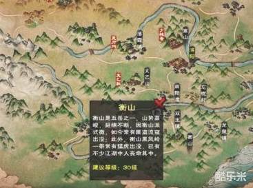 2、在游戏地图页面,找到衡山所在位置。