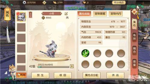 每只宠物都拥有“宝宝”和“变异”两种形态,宝宝形态的宠物在洗髓过程中会有一定几率变异,变异形态拥有更加优秀的成长和资质。此外,小宠们还拥有体质、气力、内功、悟性和神念5种属性类型,其分别对应着物理攻击、内劲攻击、气血、物理防御、内劲防御、重击和坚韧。当宠物升级之后,可以获得额外的属性点,玩家可以根据自己的角色特性进行自由分配。
