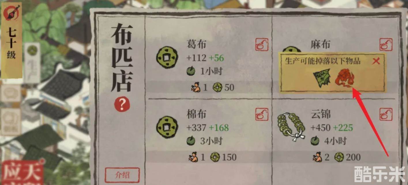 4、接着来到城镇里,找到布匹店,也安排居民进行生产,也能获得擂台彩带。
