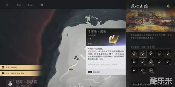 1、打开地图,传送到慈心山院,等待敌人刷新后,击杀所有的敌人后就可以掉落这本心法。