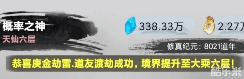 游戏内境界为人间(凡人—练气—筑基—金丹—元婴—出窍—分神—合体—大乘—渡劫),仙界(登仙—人仙—地仙—天仙—金仙—大罗金仙—仙君—仙王—仙尊—仙帝),每个境界有10个小境界