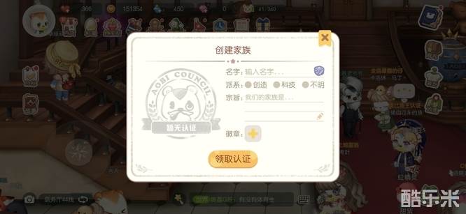 6、最后输入家族名字,选择派系,填写宗旨,点击领取认证即可。