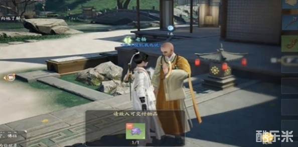 1、首先玩家准备一些紫藤花,然后传送到泉水院,找到天竺神僧进行对话。