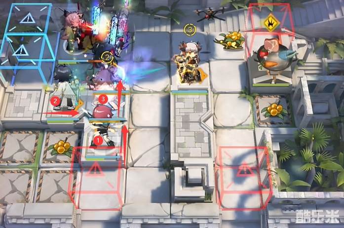 如图所示位置部署煌(向上),拉普兰德(向右),塞雷娅(吃炸弹)