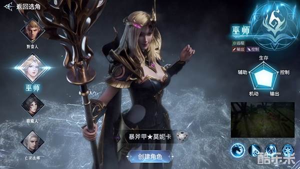 1、进入游戏后,玩家可以在野蛮人、巫师、猎魔人、亡灵法师四种职业内选择自己喜欢的开始冒险。