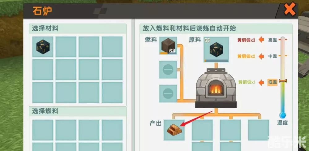 2、然后将铜合金矿放入石炉里,通过冶炼即可获得黄铜锭。