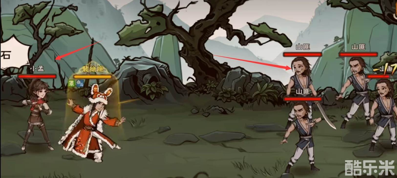 3、接着开启战斗,想将山匪击败的话,需要使用原小孟技能和自己角色的绝招。
