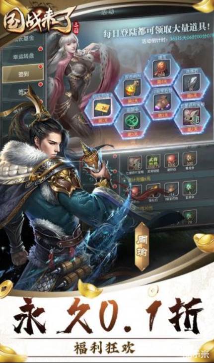 国战来了0.1折征战洛阳版是一款以日本研发正统的三国志题材策略手游!每天还有不一样的惊喜等着玩家,签到就有奖励可以拿,流畅性的同时,你将通过300座城池,组建自己的势力,3D逼真唯美人物,炫酷的技能,超强打击感,一大批名将自由选择招兵买马,组成一支强大的军队,打造最好的服装,轻松干掉对手,喜欢就不要错过!