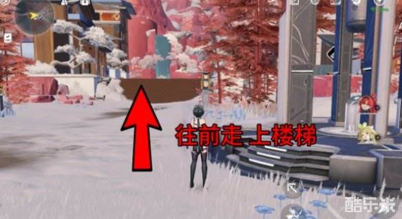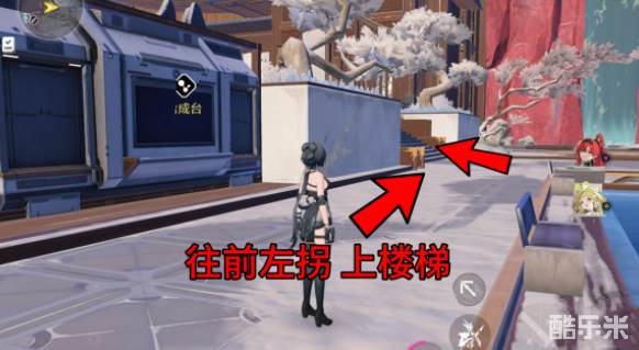 1、首先打开地图传送至虹镇,沿着楼梯前进。