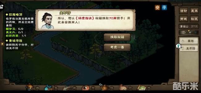 烟雨江湖谢阴阳任务怎么完成?大家可以在游戏里学习各种武学功法。只不过大部分功法是需要先完成对应的任务,如谢阴阳这个任务,不知道怎么做的小伙伴,下面和酷乐米小编一起来看看吧