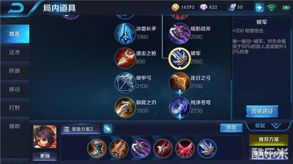 影刃可以大幅度提高李元芳的攻击速度,并且还可以为李元芳增加一定百分比的移动速度,同时被动效果还可以让李元芳在打出暴击效果之后大幅度提高自身一定百分比的攻击速度,能够让李元芳在短时间内对敌人造成大量的伤害,破军可以为李元芳增加高额的物理攻击,并且被动效果可以让李元芳攻击生命值低于一定百分比的敌人时,大幅度增加对敌人造成的伤害,使李元芳可以更加快速的击杀敌人。