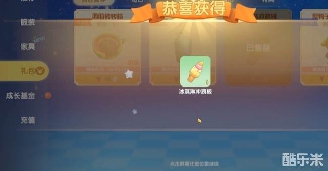 4、在礼包页面,点击冰淇淋冲浪板直接购买即可。