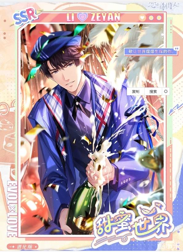3、已经在上一个李泽言单人活动(含复刻)中获取1张SSR/SP羁绊,但尚未获取活动限定羁绊,则在本次活动许愿树中首次获得的SSR/SP羁绊必为【李泽言·甜蜜世界】。