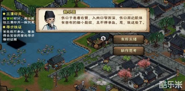 5、去药铺找鹊乐医对话,选择“有所头绪”,再选择“玄天仞诀”,然后等到子时,找到杨薄对其进行“搜身”,选择“你是何人”触发战斗。