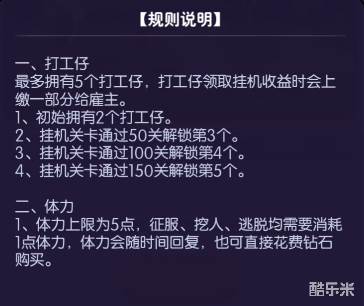 最多拥有5个打工仔,打工仔领取挂机收益时会上缴一部分给雇主。