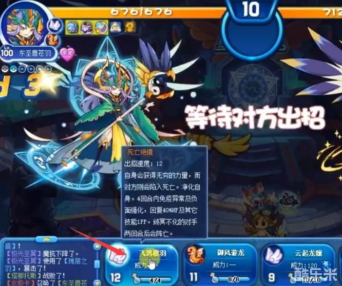 3、然后更换“苍羽”上场,使用武王或末日都可以。