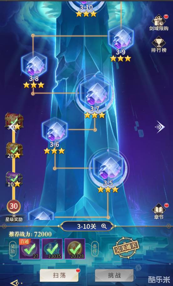 无上剑域每一章设有10个关卡,需按顺序依次通关。