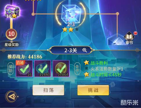 关卡总星数累计到3星时,根据累积星数多少决定快速战斗的奖励,每日5:00会刷新快速战斗(扫荡)的次数。