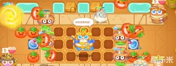 5、使用左侧的满级番茄清理旁边的钱袋。