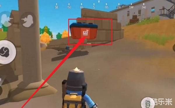 1、来到战场上找到如图所示的橙色箱子,将其打开可获得科技。