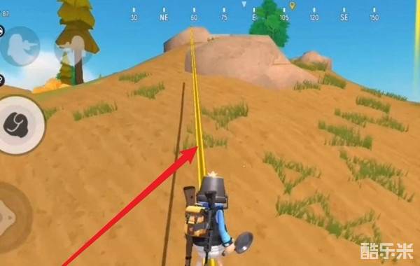 2、然后来到索道这里,使用科技将其开启。利用索道来到山顶上。