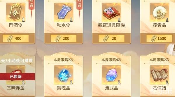 还有售价2000点的三昧赤金,售价2000点的封魂晶和浩武晶。